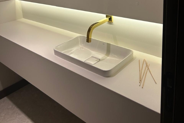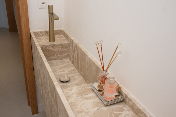 Somos uma solução completa em marmoraria, realizando todo o ciclo do projeto: desde a curadoria e fornecimento da matéria-prima até o corte especializado e a instalação final.
