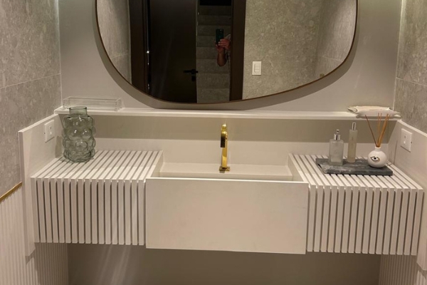 Contamos com equipe própria, o que nos consolida como uma referência de marmoraria no Vale do Paraíba pela segurança e acabamento superior em cada montagem.